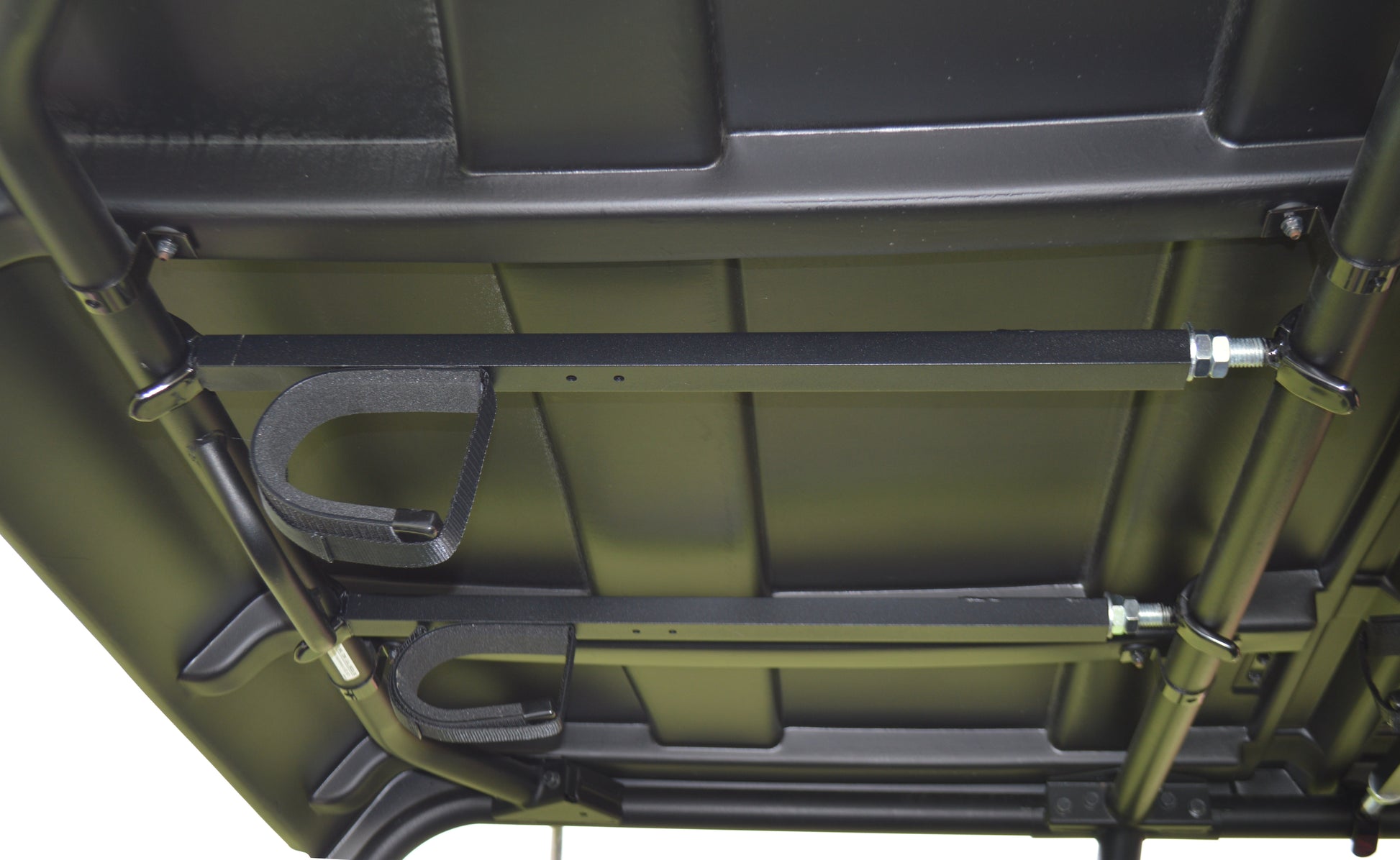 The QD870-OCR, Quick Draw Overhead Case Rack, holds ONE cased gun securely in the inside roof area of UTV’s that measure 23"-28" front to back. The Overhead Gun Case Rack uses Great Day's “opposing forces” installation system. It installs in just minutes without any drilling or bolting. This rack features super-soft clips, with Velcro closure, that provide easy access and secure transport of your cased firearm. It is made of aircraft aluminum.